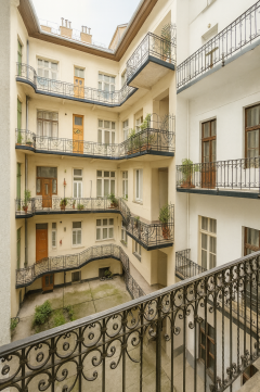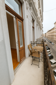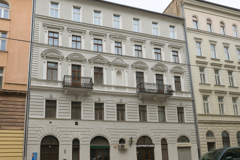 Eladó a VI. kerületben, a Jókai utca 24.-ben, a pezsgő belváros egyik legjobb részén egy 67 m²-es, nappali + 2 hálószobás, teraszos lakás egy gyönyörű, rendezett épület második emeletén.