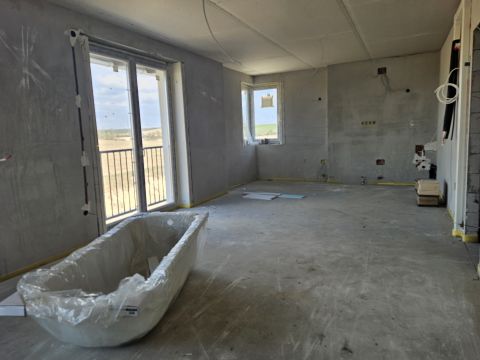 A műszaki tartalom magában foglalja a külső 15 cm-es hőszigetelést, valamint a korszerű, gazdaságos hőszivattyús padlófűtést. A kényelmet szolgálja a tágas fürdőszoba beépített WC-vel, kiegészülve egy különálló WC-vel. A szobák jól bútorozhatóak.