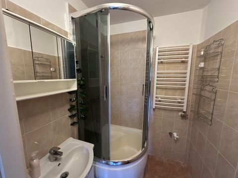 A fürdőszoba felújított, tusolós káddal felszerelt. Az egyik szobába klíma került, így a nyári melegben is kellemes hőmérséklet biztosítható.