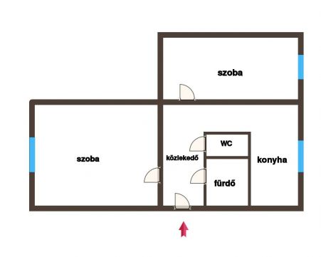 - 2 szoba /különnyíló/, konyha, fürdő, WC, közlekedő