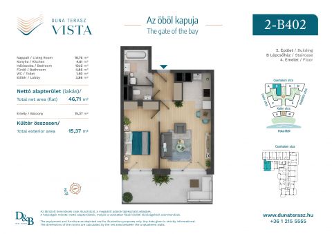 2 szoba, összesen 46,71 m² lakótér