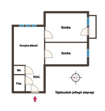 A lakás redőnyökkel felszerelt külső műanyag nyílászárókkal rendelkezik.