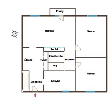 - nappali, konyha, étkező, 2 szoba, külön fürdőszoba - wc, előszoba,erkély helyiségekből áll