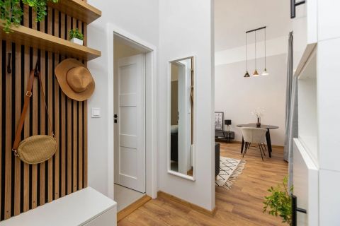 Az amerikai konyhás, étkezős nappali a vendégfogadásé, a két hálószoba viszont (13,5 és 9 nm-es) teljes nyugalmat biztosít felnőtteknek és gyermeknek egyaránt.
