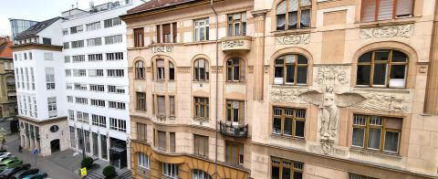 A lakás világos és jó elrendezésű, a város ikonikus pontjaira nyújt kilátást a ház: a Zsinagóga tornyai és a Szabadságszobor is látható a panorámából.
