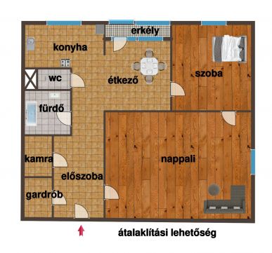 Az ingatlant utoljára 2015 modernizálták, ablak csere, festés, kád cseréje megtörtént, az ingatlanban található ingóságok külön megállapodás tárgyát képzik.