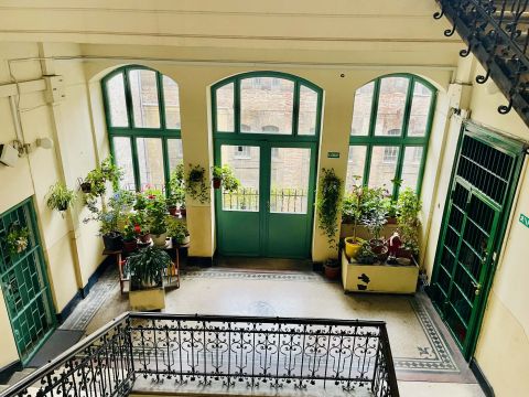 A 75 m²-es, 3. emeleti, belső udvarra néző lakás a nagypolgári épületek minden előnyét magában hordozza: magas belmagasság, tágas terek, elegancia és harmónia. A lakás egész nap világos, ugyanakkor meglepően csendes, ritka kombináció a belvárosban.
