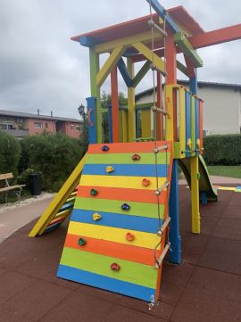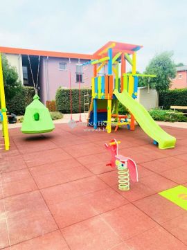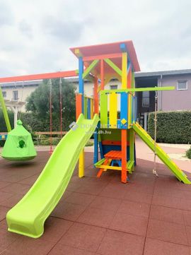 A lakópark közepén egy közösségi tér található, ahol egy felújított, gyönyörű, színes játszótér szolgálja a gyerekek szórakozását.