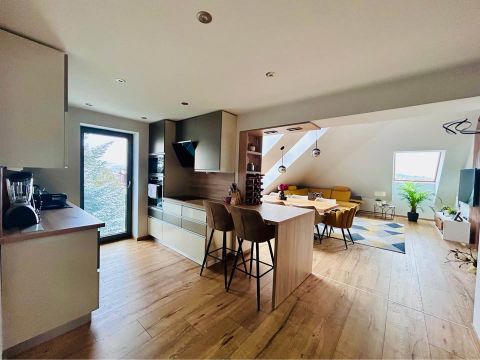 Az 5 lakásos társasház legfelső szintjén található ingatlant 2023 tavaszán adták át.