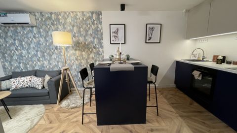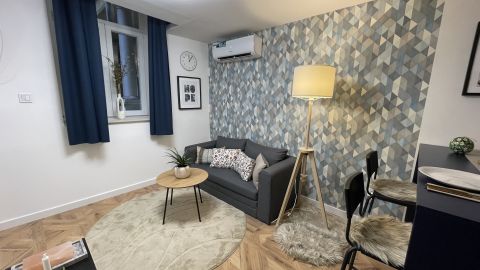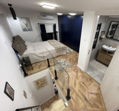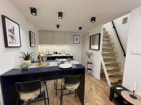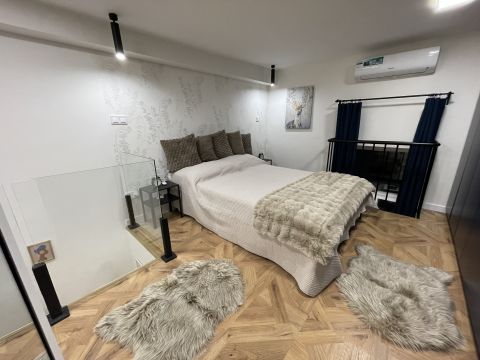 2025-ben felújított, lakberendező által tervezett, belső két szintes, 35 négyzetméteres, költségmentes, azonnal költözhető lakás keresi új gazdáját.