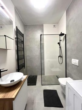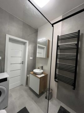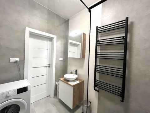 Az ingatlan komplett, gépesített (főzőlap, sütő, elszívó, mosogatógép, beépített hűtő, beépített mikró) konyhabútorral és fürdőszoba bútorral ellátott.