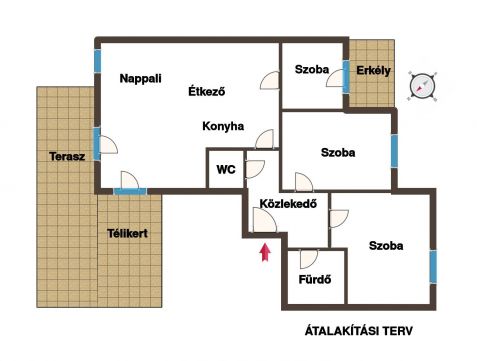A hatalmas nappalinak köszönhetően igény esetén amerikai konyhás nappali + 3 szobássá alakítható.
