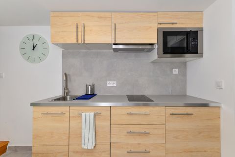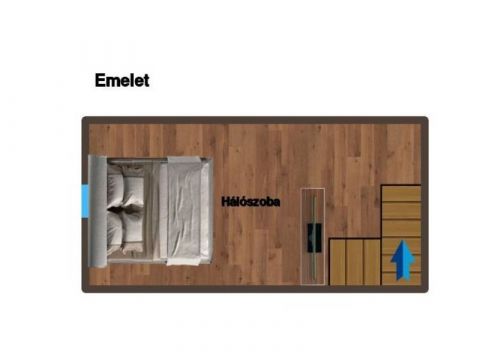 Az alsó szinten található a konyha-étkező, fürdőszoba, wc, míg az emeleten egy különálló hálószoba biztosítja a pihenést. A lakásban padlófűtés, egyénileg szabályozható hőmérséklet, modern burkolatok, és egy megbízható Ariston vízmelegítő található. A helykihasználás kiváló, minden elfér benne, amire szükség lehet egy kényelmes lakhatáshoz.