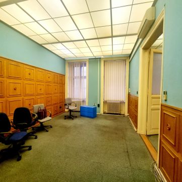Korábban irodaként funkcionált, így 2 nagyméretű udvari nézetű, 2 külön bejáratú utcára néző szoba, 2 mosdó, külön konyha, irattár és közlekedők alkotják.