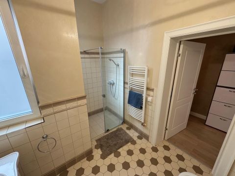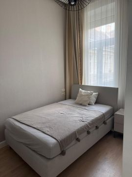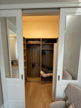 A konyha magas minőségű olasz márványlappal díszített és minden szükséges beépített géppel felszerelt, a fürdőben walk-in shower várja az új tulajdonost. A szobából nyílik egy 4 m2-es gardrób.