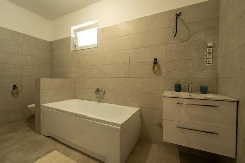 Eladó teljeskörűen felújított családi ház Fóton! Fóton, a központban, mégis csendes elhelyezkedéssel várja új tulajdonosát ez a teljeskörűen felújított családi ház, melynek Ti lehettek az első lakói! A Dózsa György útról egy aszfaltos mellékúton közelíthető meg. A környéken minden megtalálható, ami a kényelmes mindennapokhoz szükséges: üzletek, szolgáltatások, könyvtár, valamint a busz- és vonatállomás is könnyedén elérhető gyalogosan. A ház szinte teljesen újjáépítésre került! Az eredeti épületből mindössze három fal maradt. Új tető és tetőszerkezet, modern villany és vízvezetékek, csatornahálózat, háromrétegű nyílászárók, hő- és vízszigetelés, valamint 10 cm-es külső szigetelés biztosítja a tartósságot és az energiahatékonyságot. Az ingatlan 86 nm-es lakóterében amerikai konyhás nappali + 4 hálószoba, egy tágas fürdőszoba, valamint külön mosókonyha található plusz WC-vel. A falak mozgathatók amennyiben kevesebb, de nagyobb szobákra lenne szükség. Az udvaron kialakítható autóbeálló vagy garázs akár több autó számára is. A kényelmet tovább növeli a 30 nm-es terasz, pince, és a képeken látható ajándék konyhabútor. A 432 nm-es, gondozható telek közvetlenül egy csendes játszótér mellett helyezkedik el, így ideális választás családok számára is. A ház alkalmas az Otthon Start programra is!