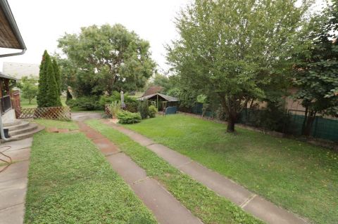 Ráckevén, egy csendes és nyugodt aszfaltozott utcában eladó egy impozáns, duplakomfortos családi ház. Az ingatlanhoz 1346 négyzetméteres, gondosan karbantartott, dísznövényekkel és fákkal beültetett udvar tartozik, amely valódi kertvárosi hangulatot biztosít. A kétszintes, betonfödémes, Porotherm 30-as téglából épült ház 2002-ben bővítésen és felújításon esett át, így korszerű és igényes otthont kínál. A 167m2 -es lakóterület (96,75 m2-es alsó lakószint és 70,5 m2-es felső szint ) mellett 32 négyzetméteres fedett terasz valamint 44 négyzetméteres pince egészíti ki a tágas tereket. Az alsó szinten egy nagy alapterületű nappali étkezővel és konyhával, egy hálószoba, fürdőszoba, külön mellékhelyiség, kamra, valamint a kertre néző, baráti és családi összejövetelekhez ideális fedett terasz található. A felső szintre masszív, kényelmes lépcső vezet, ahol napfényes nappali, három külön bejáratú, nagy méretű hálószoba, valamint a második fürdőszoba kapott helyet. Mindhárom hálóhoz saját erkély tartozik, ahonnan páratlan kilátás nyílik a környékre.
