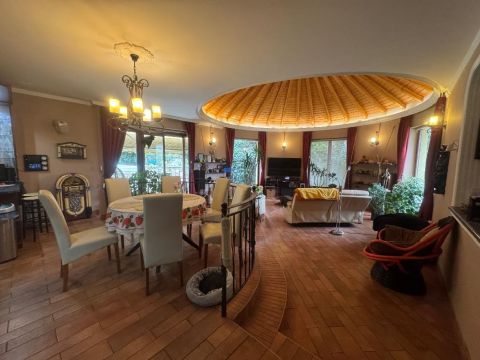 Fő lakószint: tágas, fa kupolás nappali, étkező és konyha egy légtérben, mégis jól elkülönülő hálószobákkal. A természetes fény és a minőségi anyaghasználat különleges atmoszférát teremt. Két nagy terasz: az egyik a garázs fölött, az utca irányába néz, tökéletes reggeli kávézáshoz vagy naplementéhez. A másik a hátsó, kertre néző terasz, amely közvetlen kapcsolatban van a kültéri élettel. Privát kert és medence: a ház mögötti teraszról elérhető a gondozott, intim hangulatú kert, ahol egy épített, lépcsős, 6×3 méteres medence található, ideális helyszín a nyári pihenéshez.