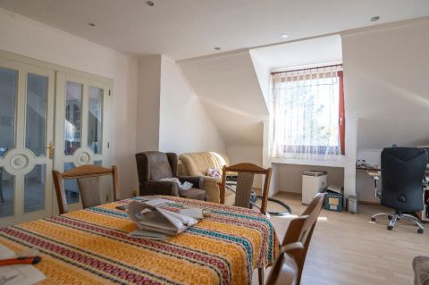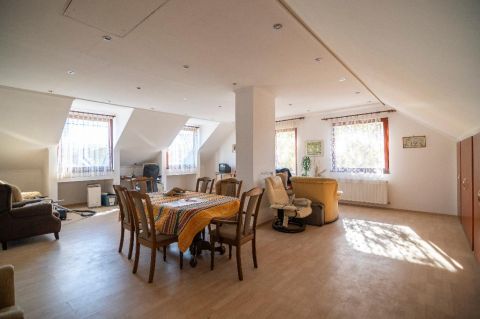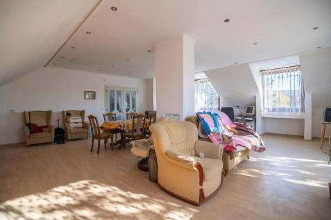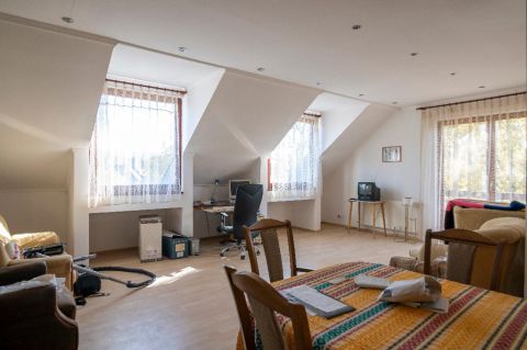 Budakeszi csendes, városközponthoz közeli részén eladó egy téglából épült, 10 cm-es szigeteléssel ellátott, 160 m2-es, belső kétszintes, duplakomfortos lakás, a hozzá tartozó 400 m2-es telekrésszel. Az ingatlan alsó szintje 1970-ben épült, a felső szint 2010-ben került kialakításra.