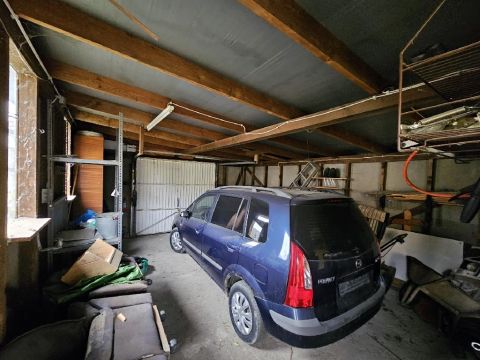 Az udvaron a garázs mellett két tároló helyiség biztosít elegendő helyet minden szükséges eszköznek. A kertben bőségesen termő barack- és körtefa és szederbokor is található