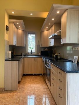 gépesített, modern konyha (12 m2), felszereltsége: mosogatógép, kerámialapos főzőlap, elektromos sütő, páraelszívó, méretre gyártott konyhabútor,