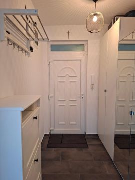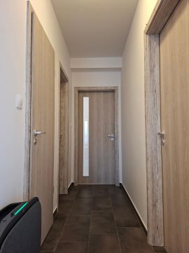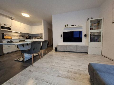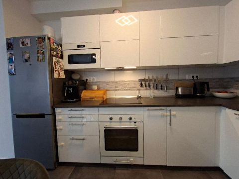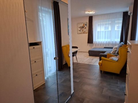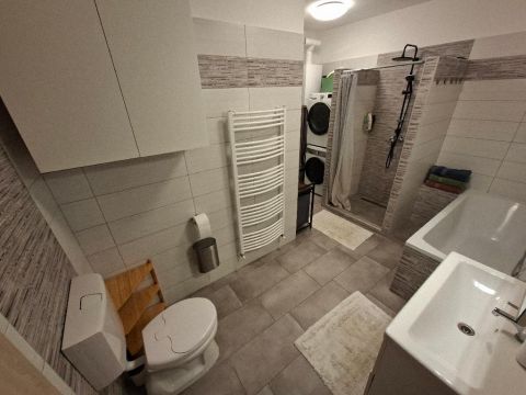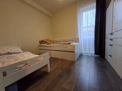 Helyiségek: Tágas nappali klímával, két külön nyíló szoba, fürdőszoba épített zuhannyal és káddal, fürdőszobában kialakított mosókonyha rész és külön WC helyiség.