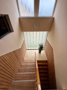 Ebben a kétszintes, 2023-ban teljeskörűen felújított családi házban három otthonos, világos szoba, továbbá három félszoba, egy modern konyha hűvös spájzzal, fürdőszoba, valamint egy emeleti, állandóan világos társalgó is található. A ház alatt egy kényelmes belmagassággal rendelkező szuterén is helyet kapott, ahol a gépészet és további tároló/spájz található. Az elosztás praktikus és kompakt, minden helyiség modern és otthonos, többségében DK, ÉNY-i fekvésű szobákkal jól használható és variálható tereket kínál.