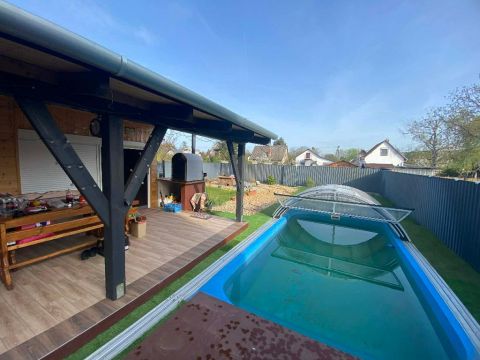 Kiemelt felszereltség egy 3×6 méteres, 1,5 méter mély, fűthető medence szűrőrendszerrel és elektromosan elhúzható fedéssel, egész éves használatra.
