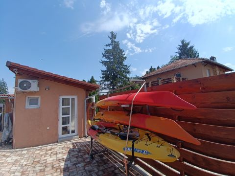 - sporteszközök, 3 kajak, tároló állvánnyal, biztonsági felszereléssel