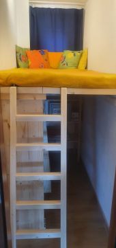 II. földszinti apartman: konyha/nappali/étkező, fedett terasz, hálószoba, kamra, gyermek kuckó (gardrób), fürdőszoba/WC