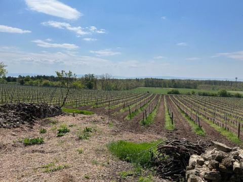 A terület minimálisan lejt, körülötte táblás mezőgazdasági területek vannak, szomszédságában kisebb régi pincék, amelyek sorra szépülnek meg. A Balaton is látszódik! ;)