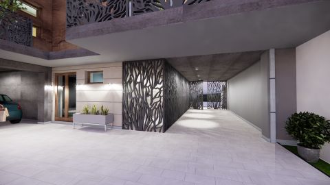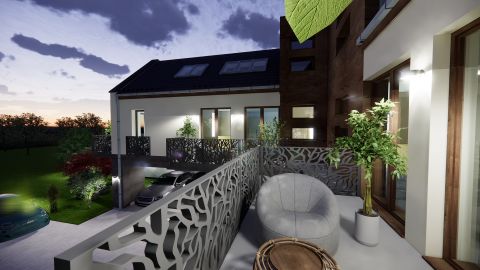 L 4 lakás : Az első emeleti (belső két szintes) 4 szobás lakás dél-nyugati tájolású, kertre néző teraszokkal. (3 terasz) Amerikai konyhás nappali, előszoba, közlekedő, három hálószoba, egy gardrób, két fürdőszoba és külön wc kerül kialakításra. Lakótere bruttó 86,17 m2 (nettó 73,52), teraszok: 11 m2 , 7 m2, 5,92 m2