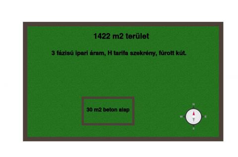 A telek 3 fázisú ipari árammal és H tarifa szekrénnyel, valamint fúrott kúttal van ellátva.
