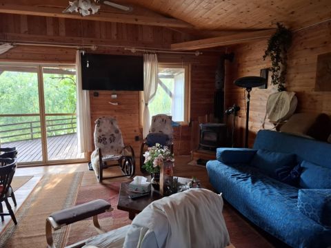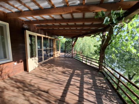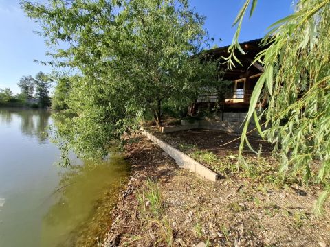 Az 50 m²-es vörösfenyő faház 2010-ben épült 728 m²-es telken páratlan környezetben, közvetlenül a tó a partján helyezkedik el.