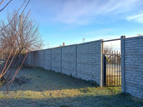 A telek prémium minőségű beton kerítéssel körbekerített, elegáns kovácsoltvas kapuval, több autó számára is saját parkolási lehetőséggel.