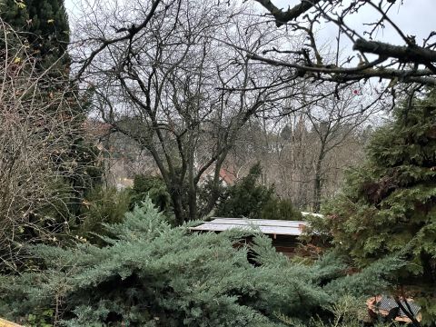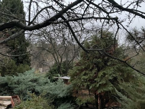 A kertben szépen megtervezett díszfák, cserjék, örökzöldek, gyümölcsfák kerti sütögető található. A házból szép panoráma tárul elénk. A telekre készült egy földszintes, tetőtér beépített modern ház terve, ami szintén rendelkezésre áll.