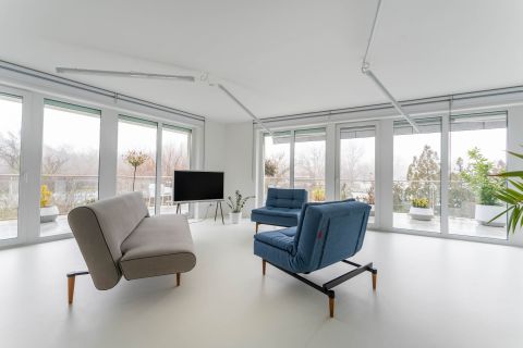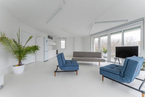 A lakás jelenleg nagy, egybefüggő terekkel rendelkezik, azonban bontás nélkül könnyedén kialakítható több szoba is, így igény szerint alakítható — akár iroda, akár családi otthon céljára.