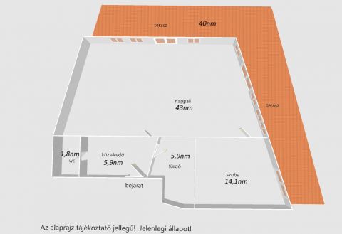 -lakás 70nm alapterületű, a hozzá tartozó erkély 40nm