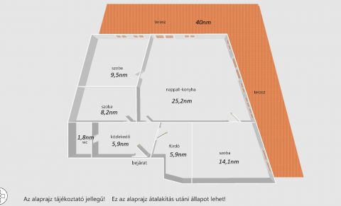 – könnyedén kialakítható akár 3 hálószoba + nappali–konyha