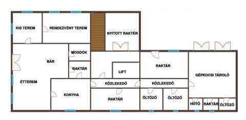 A konyha tökéletesen felszerelt, hogy kielégítse egy nagyszabású étterem és rendezvényközpont igényeit. Számos raktárhelyiség biztosítja a kellő tárolási lehetőségeket, míg az öltözők kényelmet nyújtanak a dolgozóknak. A telek mérete is lehetővé teszi a kényelmes parkolást vendégek és személyzet számára egyaránt.