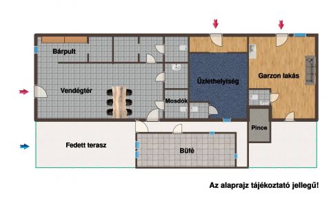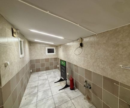 - korábban vendéglátásra használt tágas helyiség, külön vendégtérrel és több mosdóval