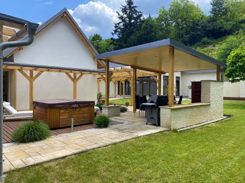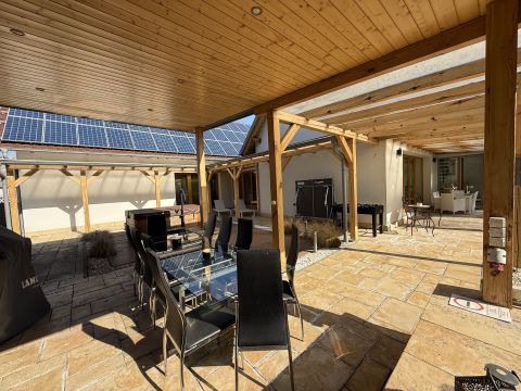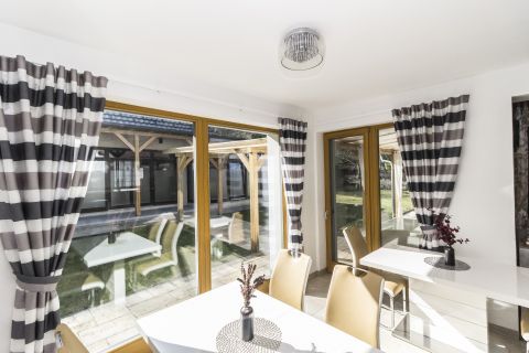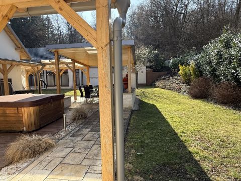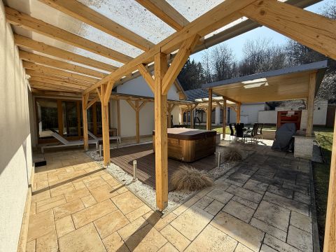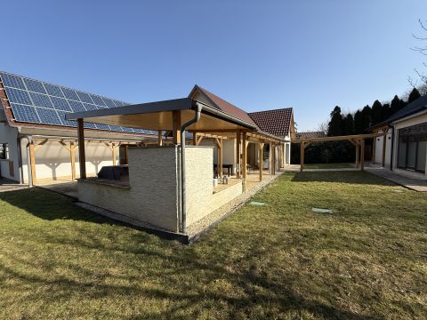 Eladó Dozmaton, egy A++ energetikai besorolású, exkluzív, 4 csillagos minősítéssel rendelkező, 5 szobás vendégház, 5037 nm telekkel, az osztrák határ közelében fekvő festői településén, amely egyedülálló falusi szolgáltatásokat kínál: wellness részleggel, borospincével, fedett grill terasszal.