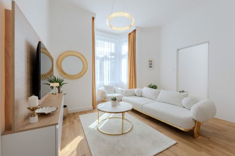 Prémium Kivitelezés: A felújítás során a legkorszerűbb belsőépítészeti megoldásokat alkalmazták. Egyedi tervezésű terek, minimalista esztétika és kompromisszummentes minőség jellemzi.