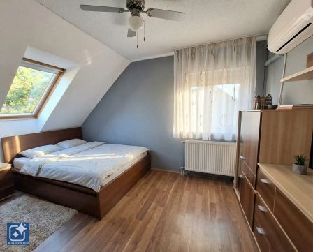 -  alsó szinten : amerikai konyha nappali étkező,  kamra, háztartási helység, fürdő wc-vel, két   külön nyiló hálószoba