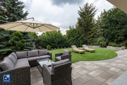 Az önálló épület egy 892 nm-es, déli fekvésű, gyönyörűen parkosított, intim, ősfás, nagy méretű örökzölddel övezett, lejtős telken helyezkedik el.