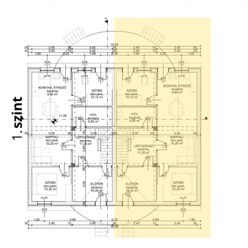 - 1.szint (nappali, konyha, étkező, szobák),