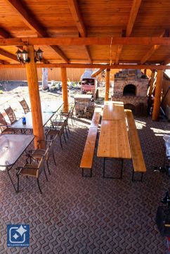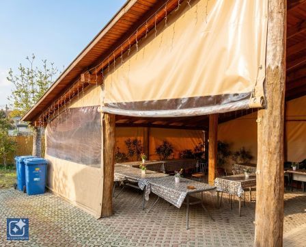 udvaron kemence, grill sütő, és hatalmas fedett terasz, amely kiváló közösségi tér vagy vendégtér lehet
