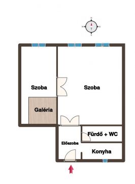 is biztosított. Az elrendezés jól átgondolt és élhető. Az előtérből nyílik a fürdőszoba,