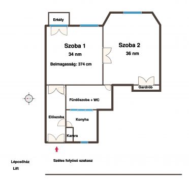 Adatok: 95 nm alapterület, 2. emelet, erkélyes, 2 hatalmas szoba (34 és 36 nm).