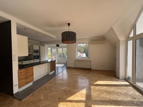 WE OFFER FOR RENT in one of the most beautiful parts of the 12th district, on the upper part of the Diós árok, yet close to the city, an 89 m2, american kitchen-living room + 2 bedrooms apartement with double comfort, 2 balconies, and with stunning panoramic views!